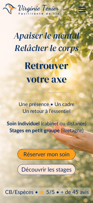 Je vous accompagne pour retrouver votre axe - apaiser le mental - relâcher le corps. Fatigue, surcharge, émotions qui débordent, période de transition. Vous pouvez venir tel que vous êtes. Vous repartez plus léger, plus recentré, plus affirmé.