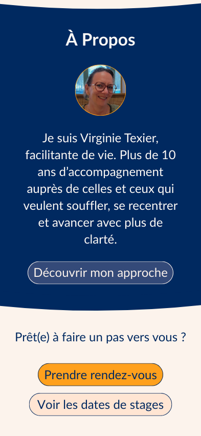 Je suis Virginie Texier, facilitante de vie et révélatrice d’âme.